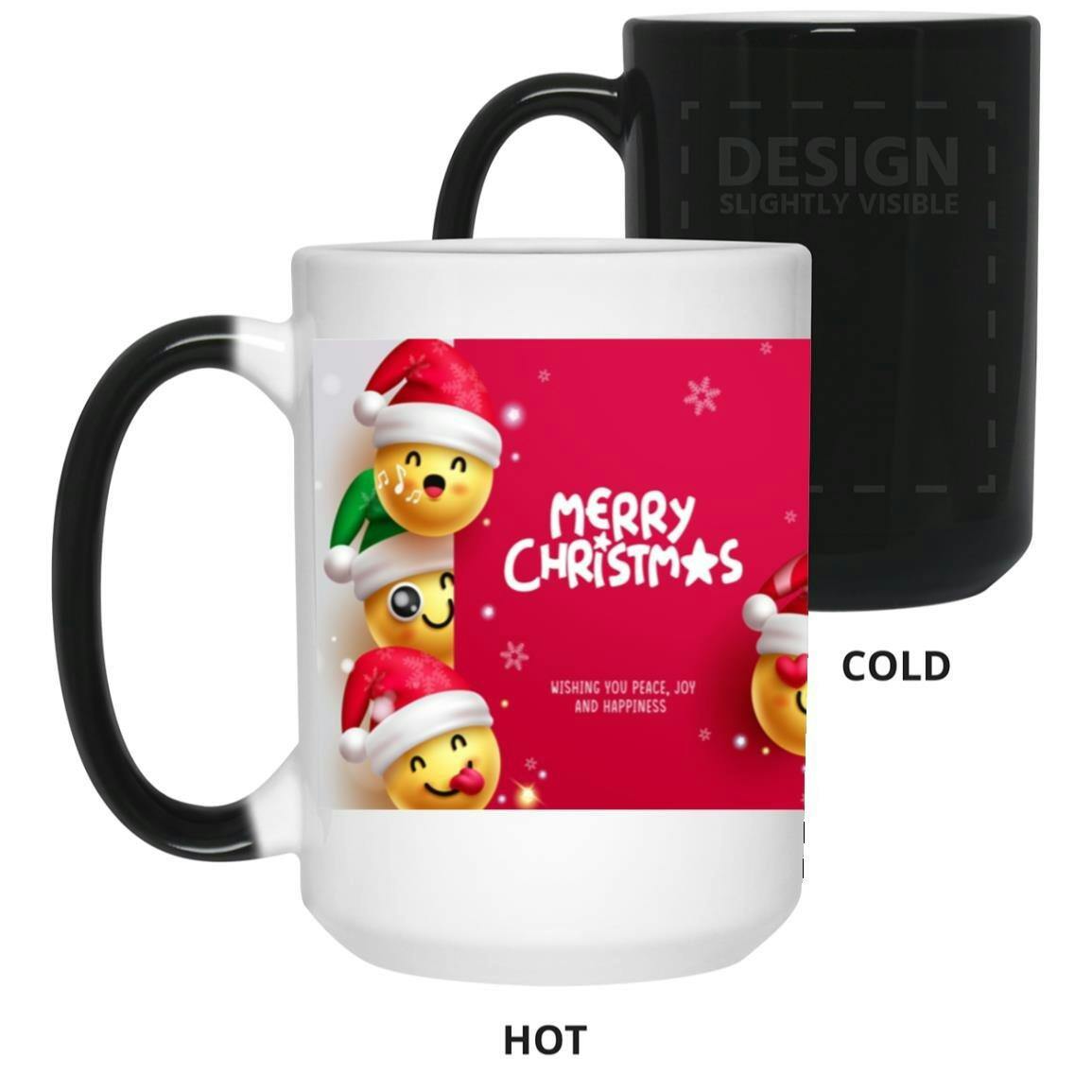 Drift into holiday dreams with the Emoji in Nightcap Surrounded by Gifts and Tree Ornaments 15oz Color-Changing Mug. Crafted from durable ceramic, this oversized mug transforms when filled with hot liquid—revealing a playful emoji in a cozy nightcap, surrounded by festive gifts and sparkling ornaments.